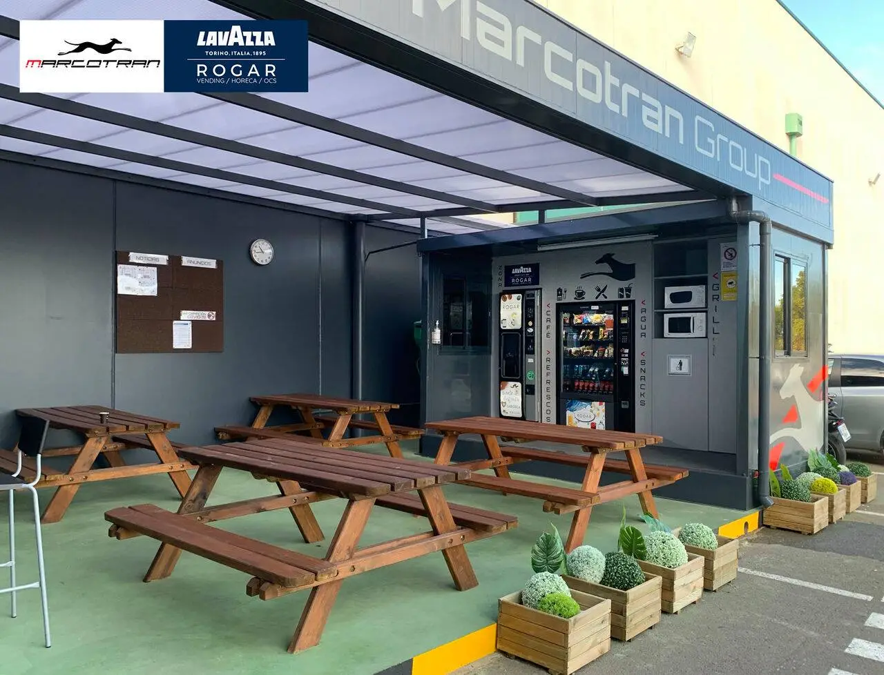 “Stopping Area” conforma una zona de descanso exterior más moderna y amplia tanto para conductores como para empleados de oficina y cualquier persona que acceda a Marcotran.