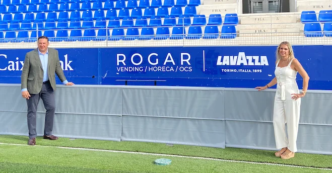La presentación tuvo lugar en El Alcoraz, estadio del club donde el presidente de la SDHuesca, Manuel Torres, y de Susana García Román, CEO de Rogar & LAVAZZA sellaron este acuerdo para trabajar conjuntamente.